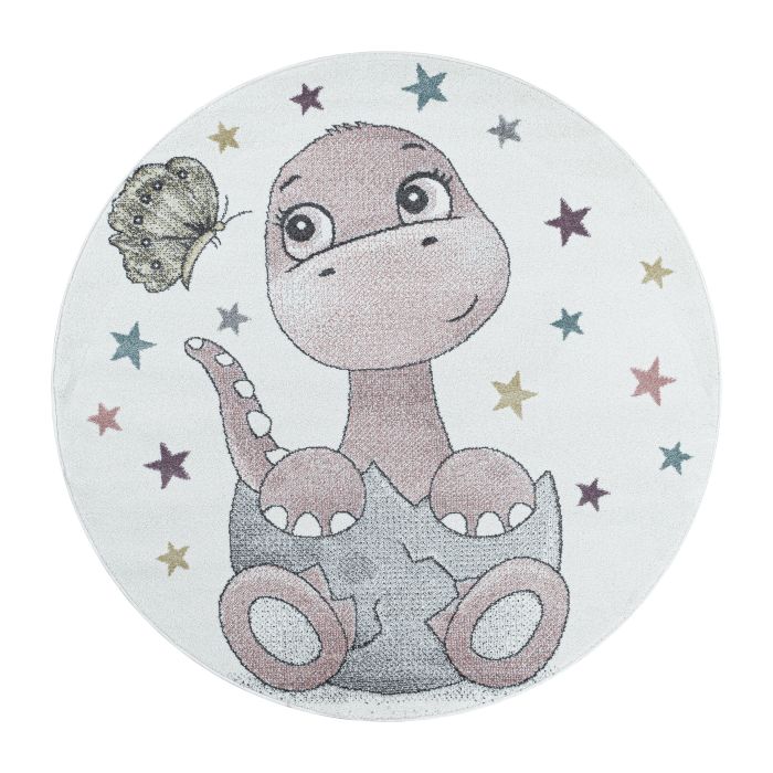 Funny Dino bambino tappeto camera bambini pelo corto rotonda Ø 160cm rosa